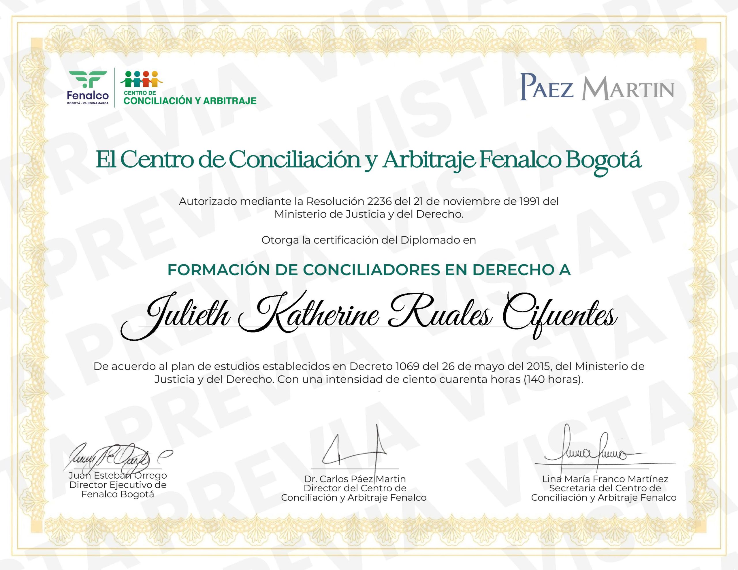 - Su experiencia incluye representación legal en negociaciones previas a la judicialización y acompañamiento en escenarios de conciliación extrajudicial orientada a la solución pacífica de conflictos.