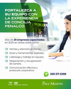 👉 Si su organización busca un aliado para crecer a través del conocimiento, en Concilia Fenalco encontrará un equipo con la experiencia y el respaldo para hacerlo posible.