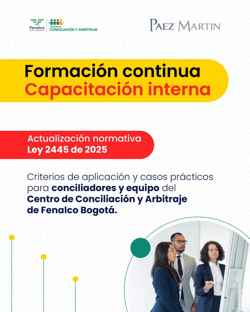 Formación continua · Capacitación interna Actualización normativa — Ley 2445 de 2025 Criterios de aplicación y casos prácticos Para conciliadores y equipo del Centro de Conciliación y Arbitraje de Fenalco Bogotá