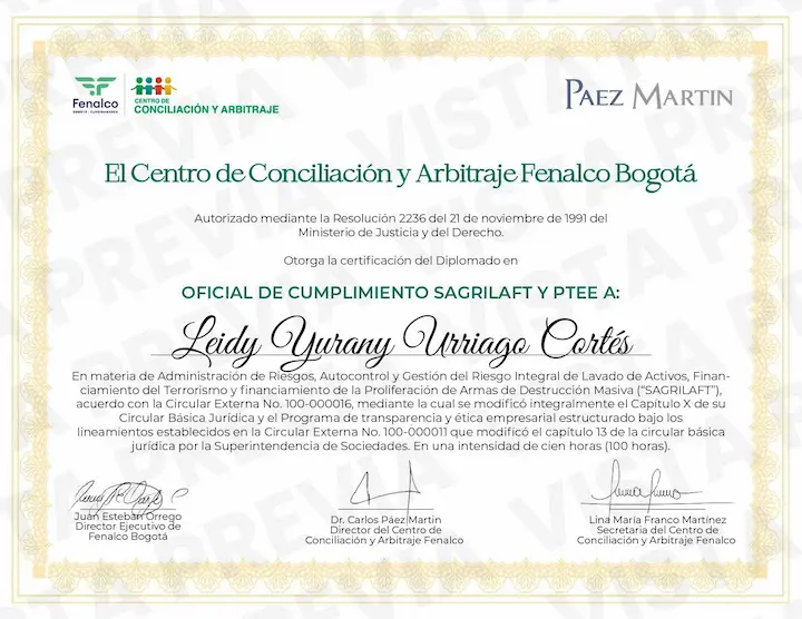Contadora pública, especialista en control organizacional con amplia experiencia de auditoría y cumplimiento en el sector de manufactura y alimentos. Conocimiento en seguros, normativa de sagrilaft, ética y transparencia empresarial y protección de datos personales.